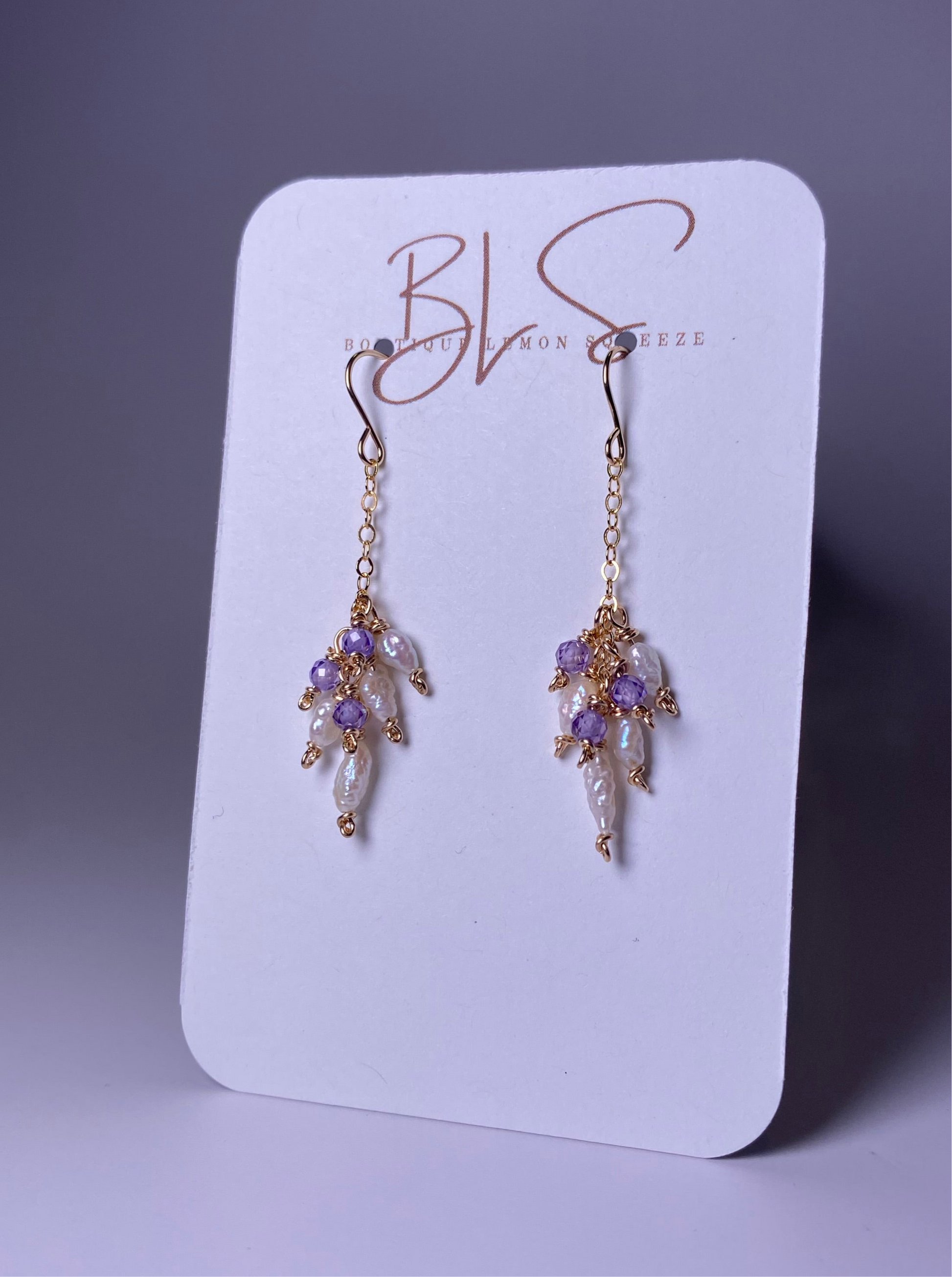 - Purple CZ and freshwater pearls OR garnet and freshwater pearls